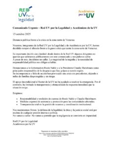 Los integrantes de la Red UV también revelaron que dentro de la propia organización hubo presiones para evitar que el comunicado saliera a la luz, pero aseguraron que optaron por romper el silencio “ante la gravedad de la situación”.